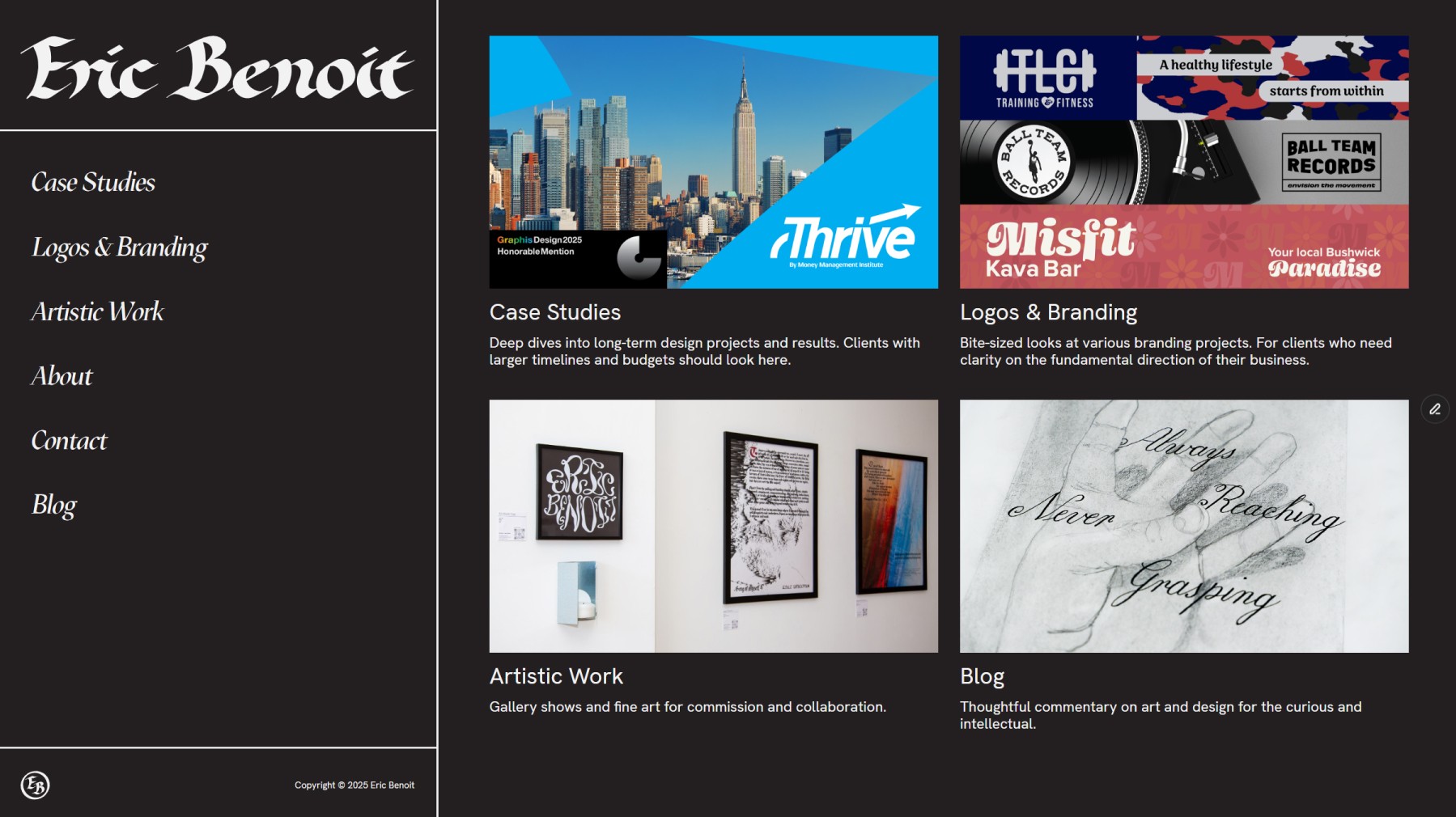Well, there was one big reason I’ve struggled to keep my work up-to-date: I was using Webflow to design and host my portfolio, a great platform for some but not for me. So at the end of last year, I made the decision to redesign my portfolio and migrate it to a different platform: Framer. That decision kicked off a project that, just like the Thrive Forum attendee’s website, became way more involved and took a lot longer than I expected. Still, I’m glad I did it, and I learned a ton throughout the process. Here’s the story (part 1!):